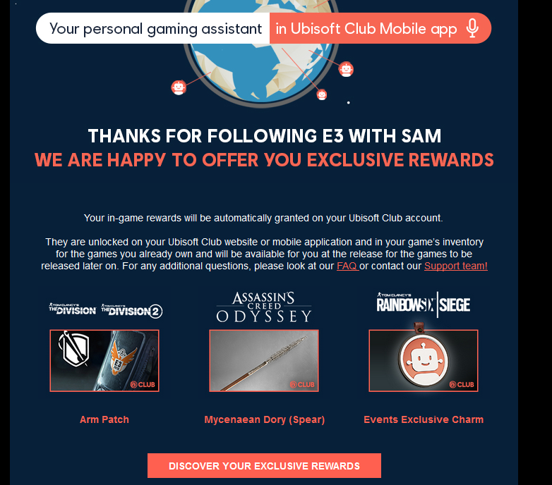 SAM is like Cortana for Ubisoft app. It’s for lazy people who are lazy to type stuff.